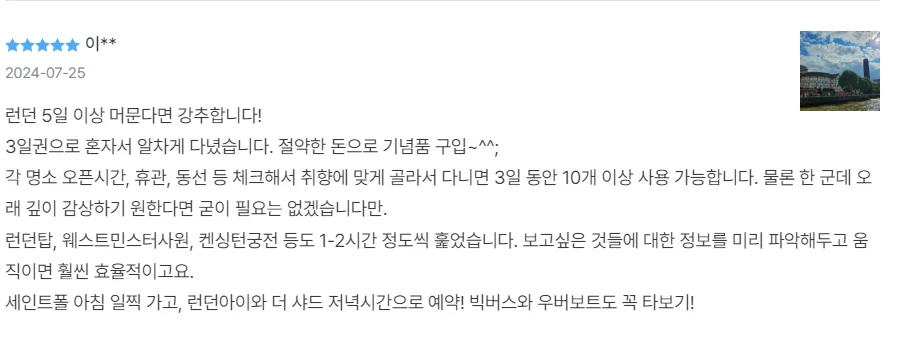 실제 여행자들께서는 마이리얼트립에서 구매한 런던패스에 대해 가성비 면에서 극찬을 남겨주셨는데요!